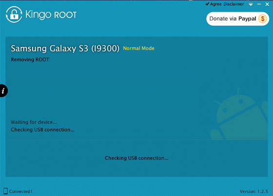 ولإزالة الروت نوصل الجوال من جديد بكبل الـ USB فيظهر لنا زر حذف الروت Remove Root